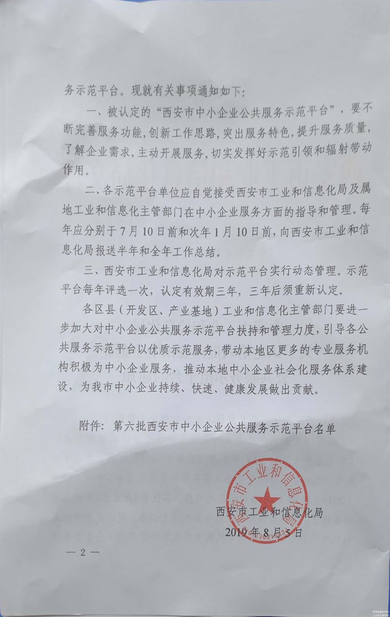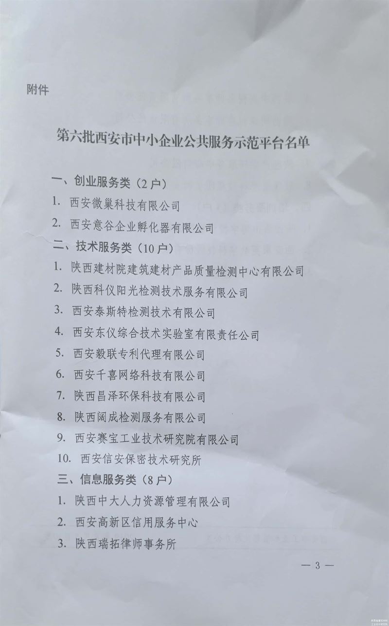 我院檢測(cè)中心榮獲第六批西安市中小企業(yè)公共服務(wù)示范平臺(tái)