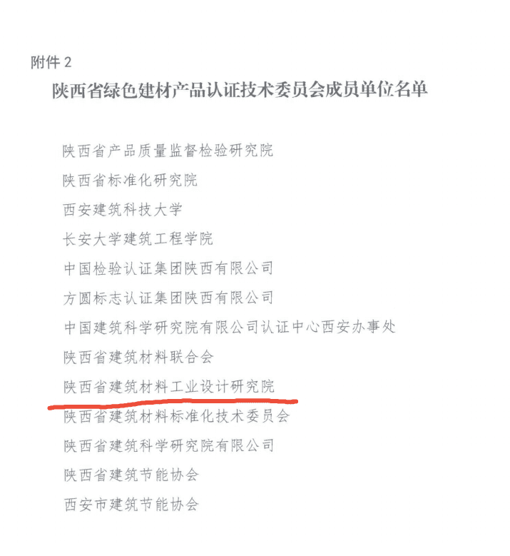 2021年4月14日,由陜西省市場監(jiān)督管理局、陜西省住房和城鄉(xiāng)建設廳、陜西省工業(yè)和信息化廳聯(lián)合印發(fā)了《陜西省綠色建材產(chǎn)品認證實施方案》的通知(陜市監(jiān)發(fā)〔2021〕148號),根據(jù)該實施方案成立了陜西省綠色建材認證工作推進組和全省綠色建材產(chǎn)品認證技術委員會,我院成為十三家技術委員會成員單位之一。