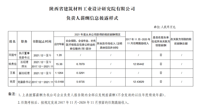 陜西省建筑材料工業(yè)設(shè)計研究院有限公司負(fù)責(zé)人薪酬信息披露樣式