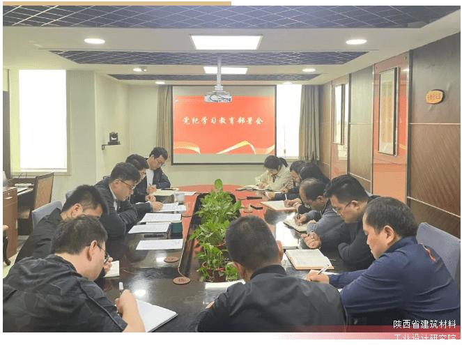 近日,陜西省建筑材料工業(yè)設計研究院有限公司黨委召開黨紀學習教育部署會。院黨委委員、副總經理閆漢洋主持會議,院黨委書記、執(zhí)行董事、總經理石魯豫出席并發(fā)表講話,院全體中層干部、各黨支部支部書記及支部委員參加會議。