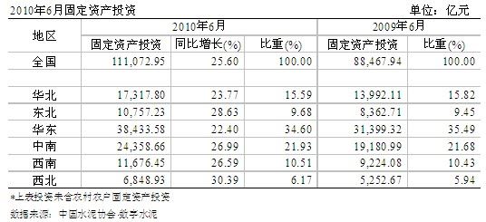2010年1~6月份,城鎮(zhèn)固定資產(chǎn)投資額達(dá)111,073億元,同比增長(zhǎng)25.6%,西北地區(qū)增長(zhǎng)最快,同比增長(zhǎng)30.39%。地區(qū)中,海南以41.2%的增速位居第1,廣西、寧夏、甘肅、湖北緊隨其后,增速都在36%以上。