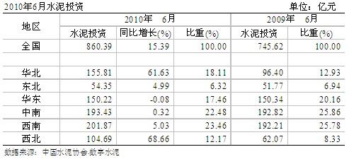 2010年1~6月份,水泥投資額繼續(xù)增加,達(dá)860.39億元,但增速繼續(xù)放緩,為15.39%,西南水泥投資額雖已以201.87億元排在首位,但增速仍維持在5.03%的低位運(yùn)行。地區(qū)中,四川投資額雖位居首位,但繼續(xù)保持負(fù)增長(zhǎng)狀態(tài),而投資額排名第二的河北則以104.9%的增速保持了增長(zhǎng)態(tài)勢(shì)。